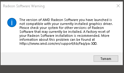 İyi akşamlar. AMD Radeon Software uygulamasına girmeye çalıştığımda bu şekilde bir sorunla karşılaşıyorum. Birçok kez silip yeniden yükledim ayrıyeten manuel olarak da bütün AMD sürücülerini kaldırıp yine yükledim. İlk başta açılıyor PC'yi resetleyince aynı sorun devam ediyor bununla ilgili nasıl bir yol izlemeliyim?