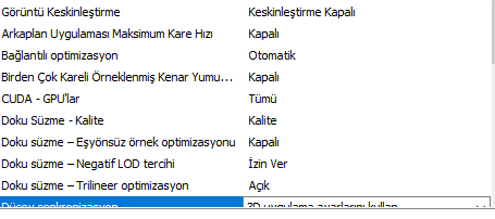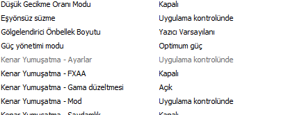 NVIDIA Denetim Masası'na girip her sekmeden ekran görüntüsü yollayın.
