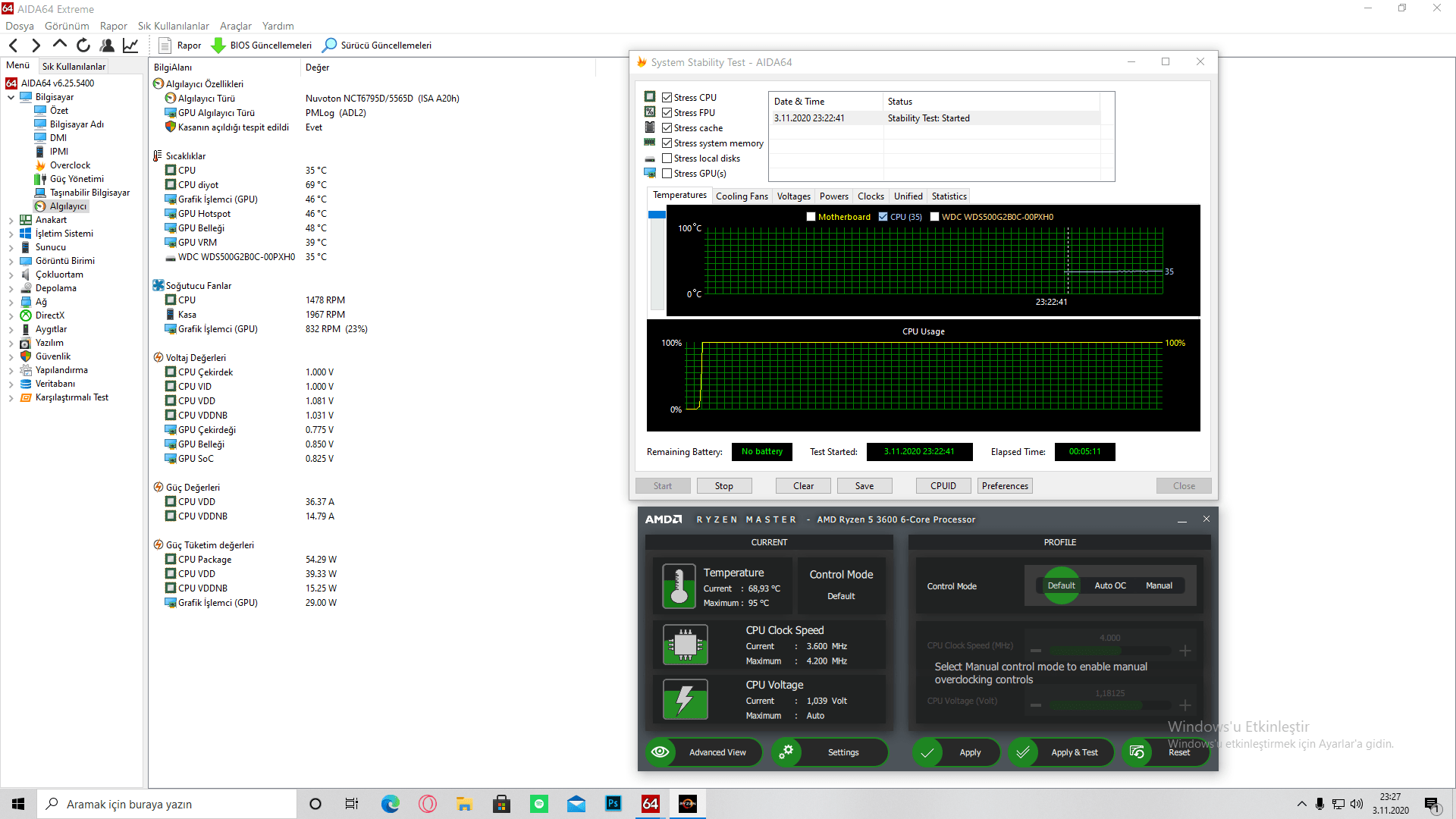 Hocam buyurun 2'si bir arada yaptımHiç acelesi yok. Sen ne zaman istersenAMD Ryzen Master indir onunla test et ve gözlemle değerleri. Bazıları onun daha doğru sonuçlar verdiğini söylüyor.