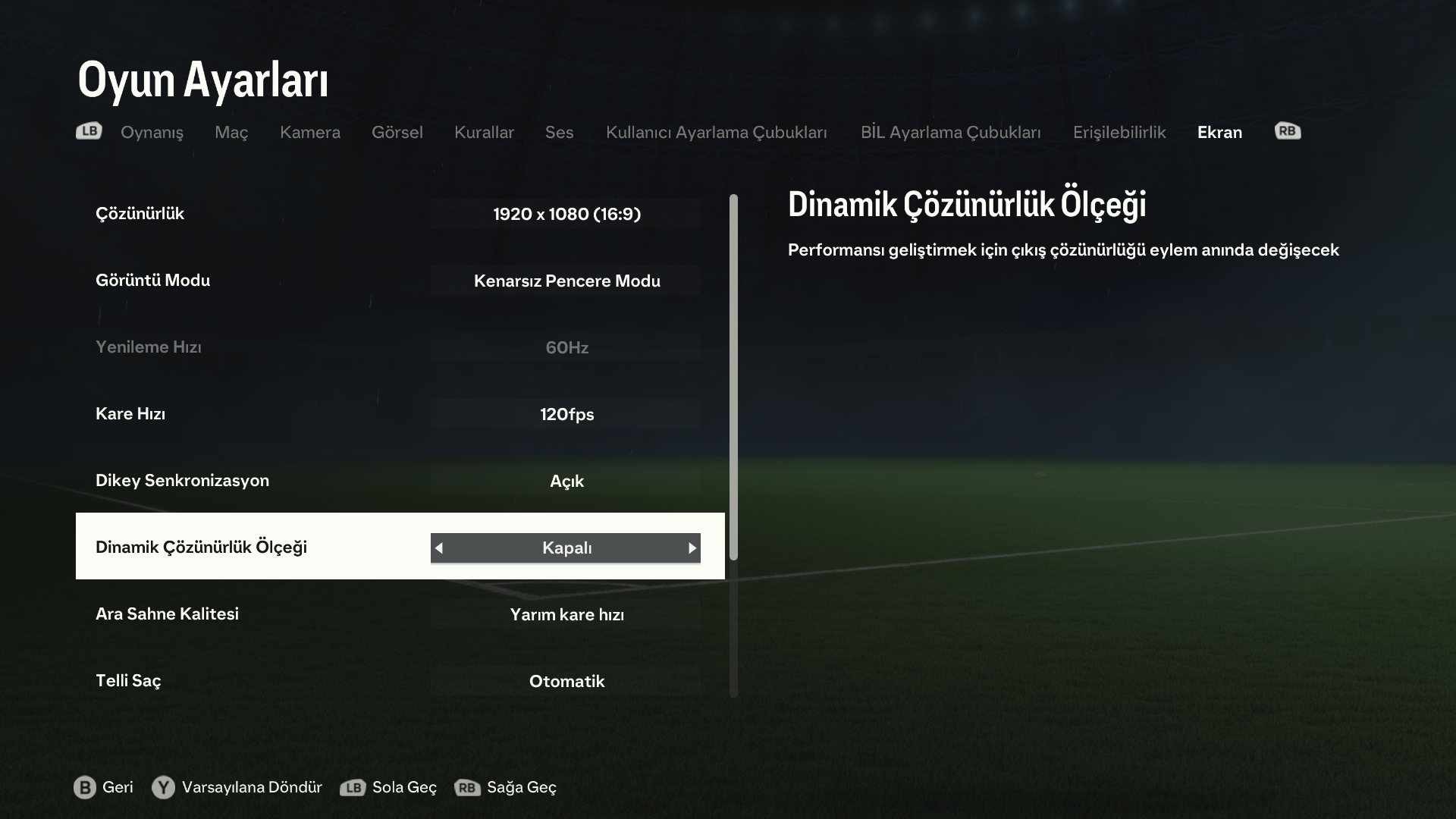 Ben R5 7640HS - RTX 4060 ile oynuyorum oyunu telli saç ayarı vs. oyun olabilecek en yüksek ayarlarda oynuyorum ve sorun yaşamıyorum. Yani sistem ile alakalı bir probleminiz yoktur diye düşünüyorum. EA FC 24 değil ama FIFA 23'ü daha önce yine aynı şekilde en yüksek ayarlarda R5 2600 - GTX 1660 Ti özellikli eski bilgisayarımda oynuyordum onda da sorun yaşamıyordum. Bunu neden söylüyorum? Optimizasyon sorunu cart curt diyenler olmasın diye. Farklı bir problem var yani burada. Dinamik Çözünürlük ayarı açık olunca sistem fark etmeksizin kasma/takılma sorunları oluyordu diye aklıma o gelmişti fakat o ayarınız da kapalıymış zaten. Oyunu 60 FPS'e sabitlemeyi denediniz mi acaba? Çünkü şöyle bir şey var FIFA'da: