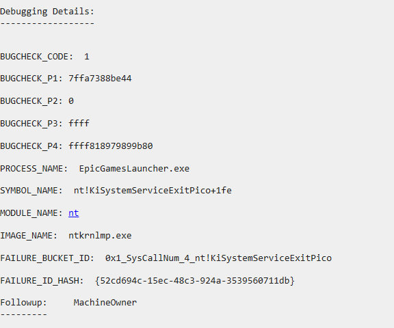 Temiz önyükleme yaptıktan ve başlangıçtaki her şeyi devre dışı bırakıp yeniden başlattıktan sonra 2 saat boyunca mavi ekran görmemiştim ancak Epic Games'i açmamla 10 dakika içinde mavi ekran görmem bir oldu.