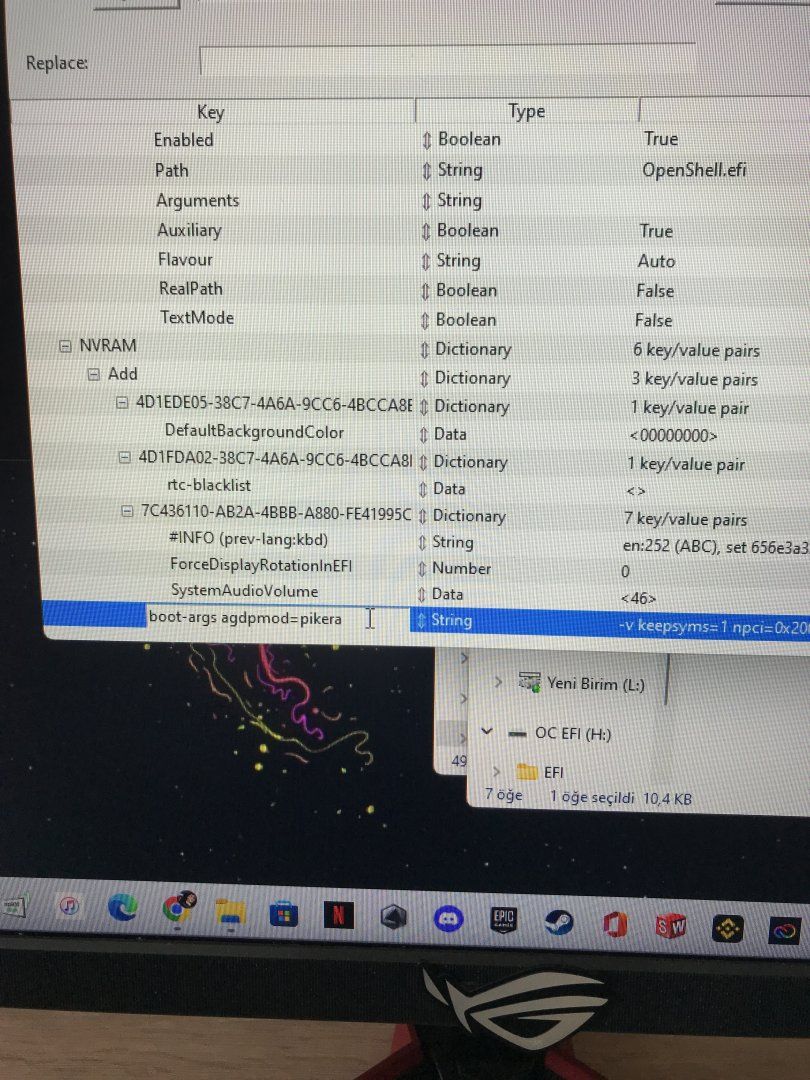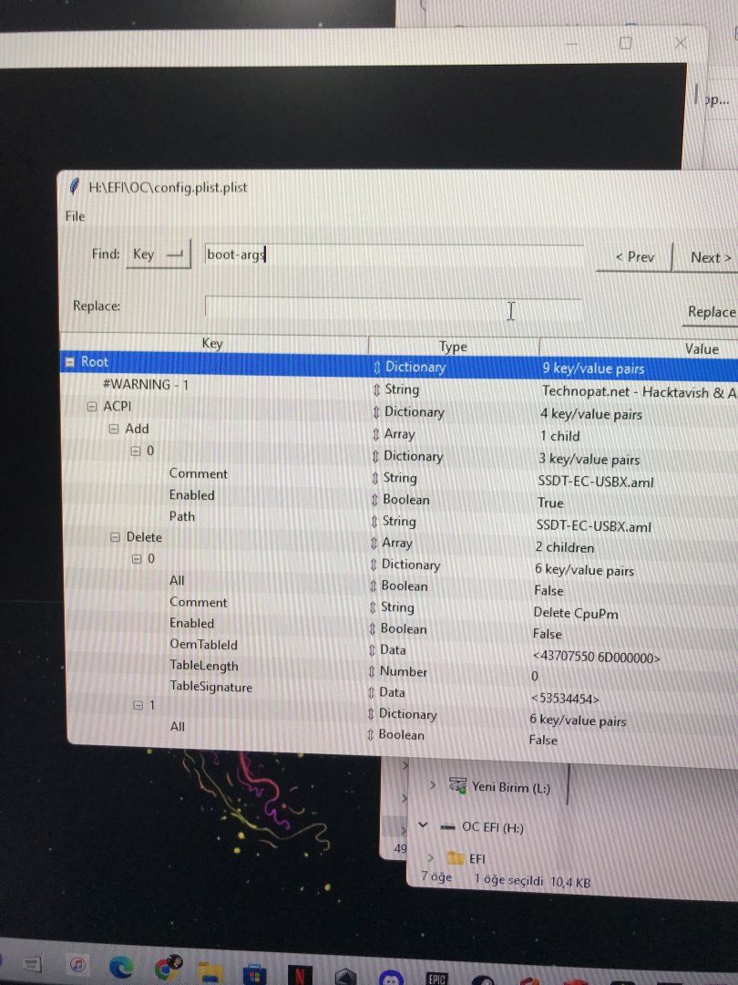 Config.plist'i açın ve boot-args'ı bulun. Ardından agdpmod=pikera komutunu ekleyin ve kaydedin. Sonrasında tekrar deneyin. Config.plist'i, ProperTree kullanarak açabilirsiniz.