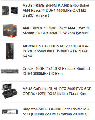 Bilgisayar özelliklerim bu şekildedir, daha 2 ay oldu toplayalı.