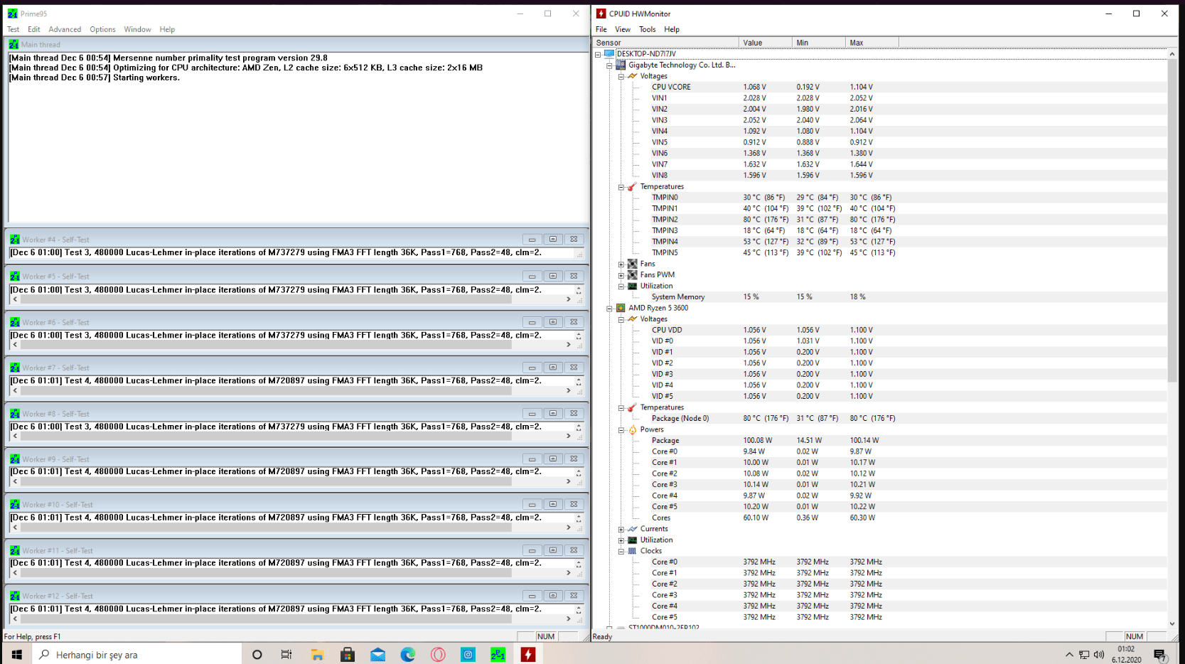 Merhabalar, daha önce 2 konu açmıştım. Bunların ikisi de şu an yaşadığım bir problem için. Bu problemi çözmeye çalışırken yeni bir konu fark ettim. Konun kaynağı için "Bu bilgisayar bir hata denetiminde yeniden başlatıldı" hatası ile Oyun Oynarken "Fatal error" konularına bakabilirsiniz. Şimdi fark ettiğim şey ise işlemci voltaj dengesizliği. CPB kapalı iken CPU clock Ratio'yu 38.00'a sabitledim, test yaptım, sonuç bu: