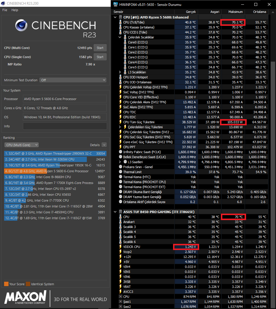 R5 5600 4.8 GHz ile Cinebench R23 testi dünya rekoru mu?