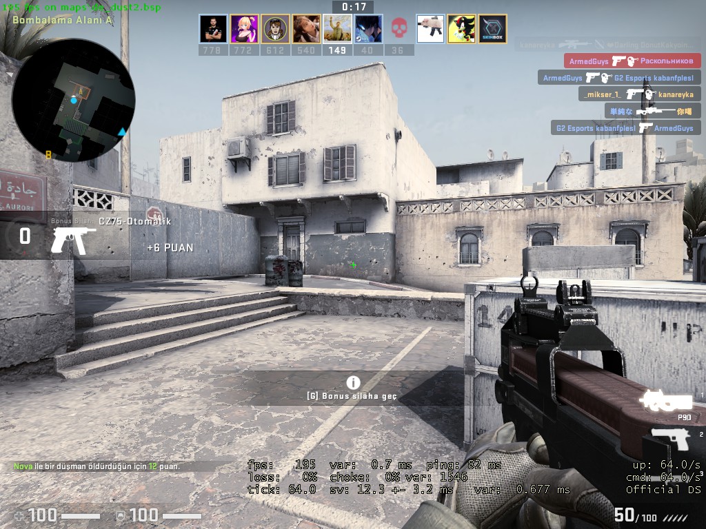Not: Oyunda hareket etmediğimde Online maçta FPS 500-600 olurken, hareket ettiğimde ani şekilde 150 gibi bir değere düşüyor ve oyunumu genel olarak o FPS civarlarında oynuyorum.