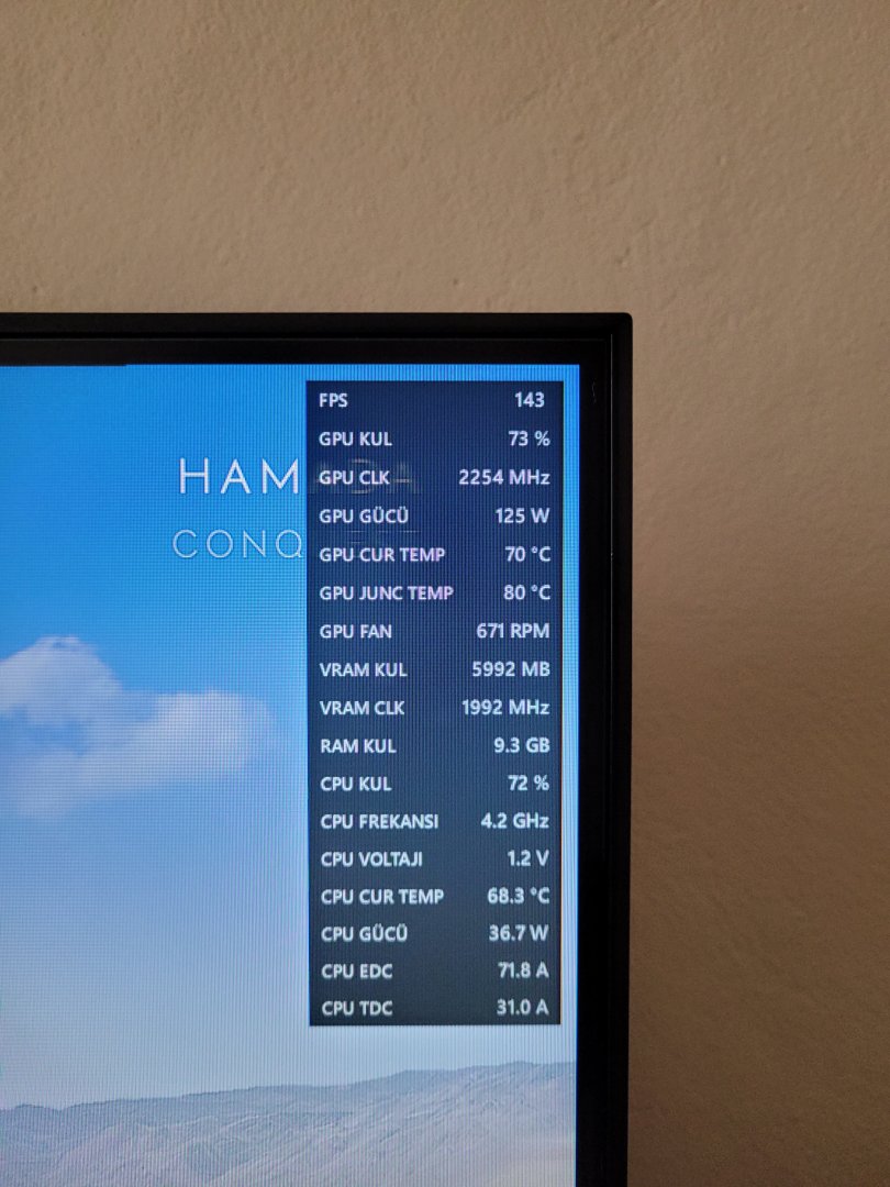 Yeni sistemimle ilk defa BF5 girdim ve 1080p Ultra ayarlarda 2 saate yakın oynadığım süreçte 3 kez sıcaklık FPS değerlerini fotoğrafladım. Sizce bu değerler normal mi bir şey yapmaya gerek var mı anlamadığım için tavsiyelerinize yorumlarınıza açığım.