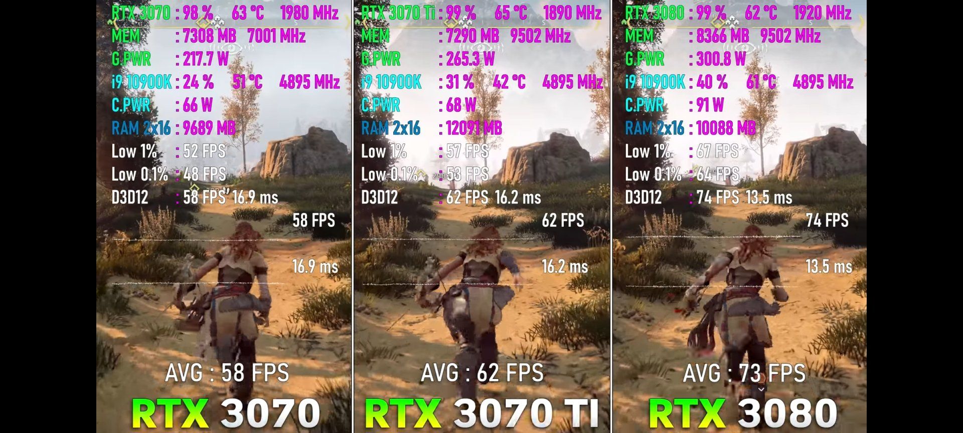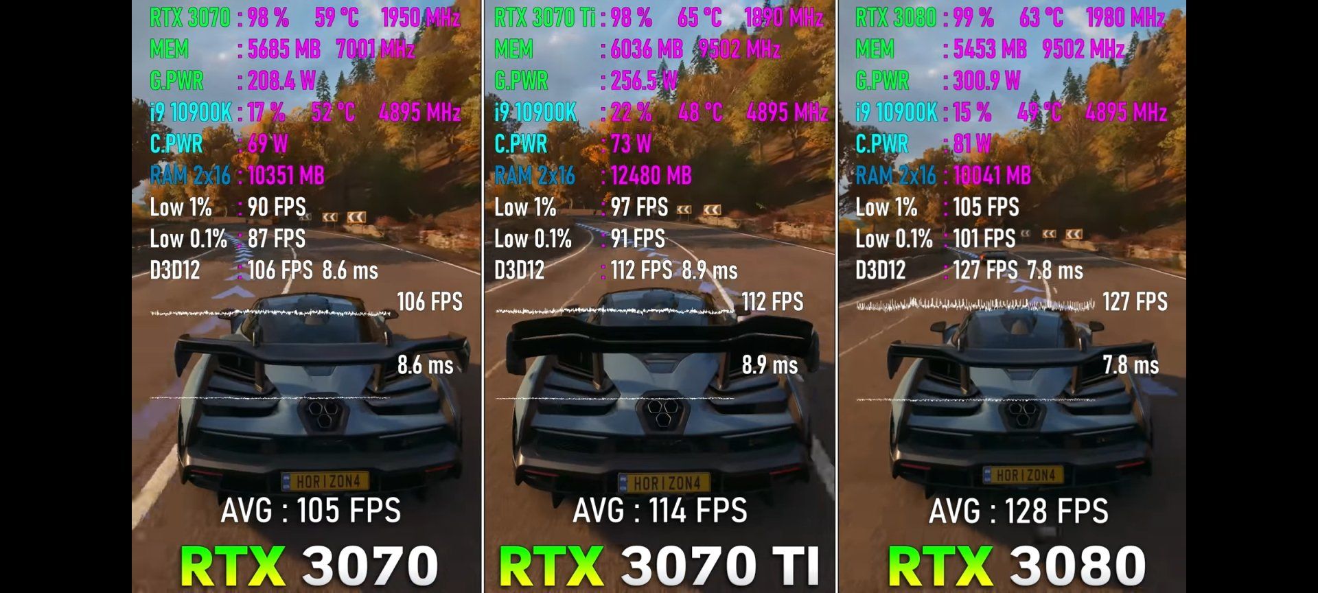 Oyundan oyuna 3070'i geçtiği de olabiliyor. Forza, ac valhalla, hitman 3 gibi amd tarafına yatkın olan oyunlarda örneğin.