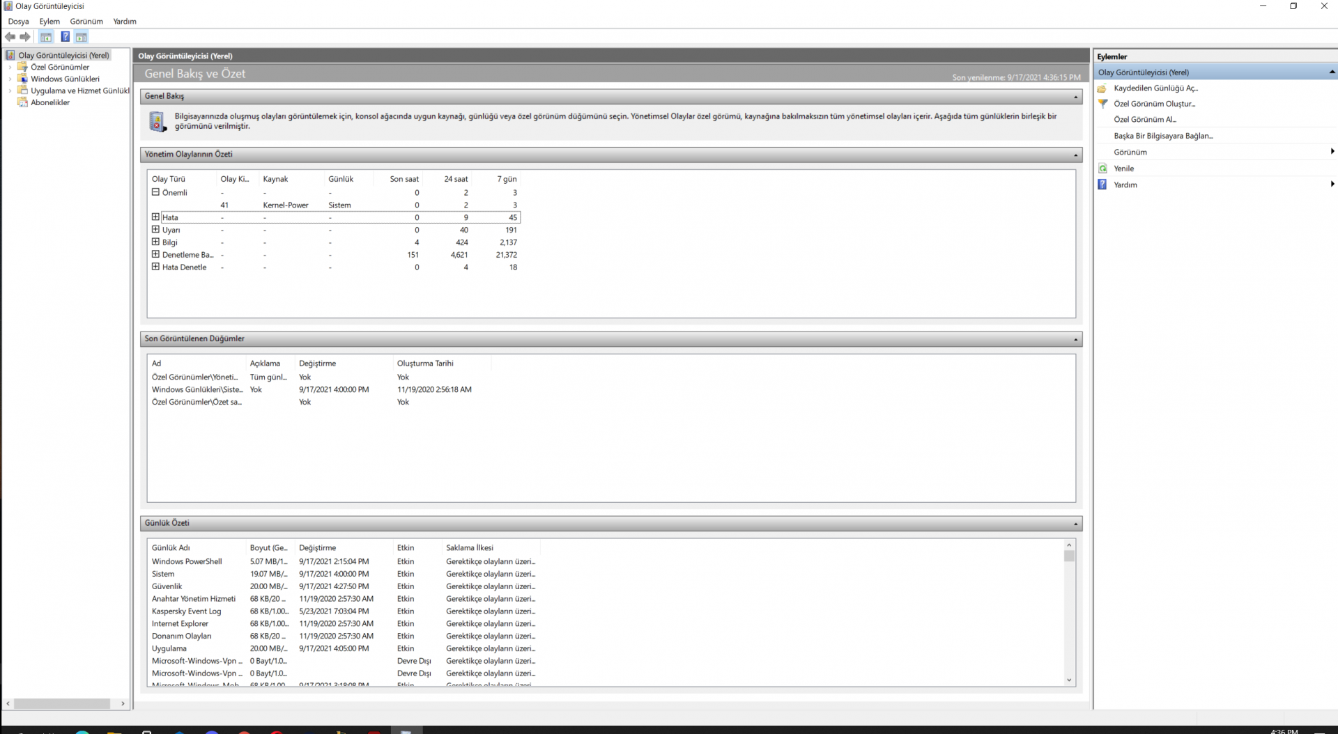 'Sistem düzgün kapatılmadan yeniden başlatılmış. Bu hatanın nedeni sistemin yanıt vermeyi durdurması, kilitlenmesi veya beklenmeyen bir şekilde güç kaybına uğramış olması olabilir.' uyarısı ve Hata: 0xC0000001 kodları sıralanmış kırmızı olan listede.
