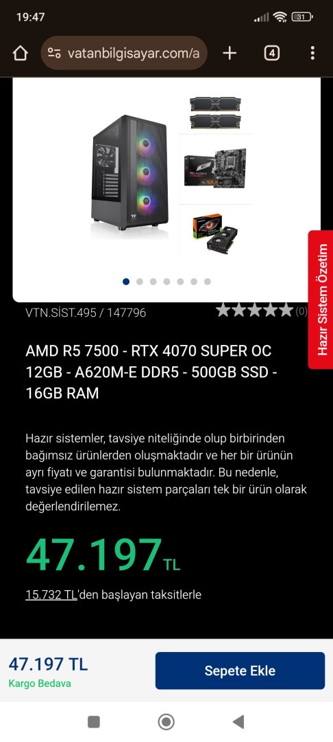 Teşekkürler asus lu bi sistem var bizimkinin 2x altı felan 47 k değmez bencede