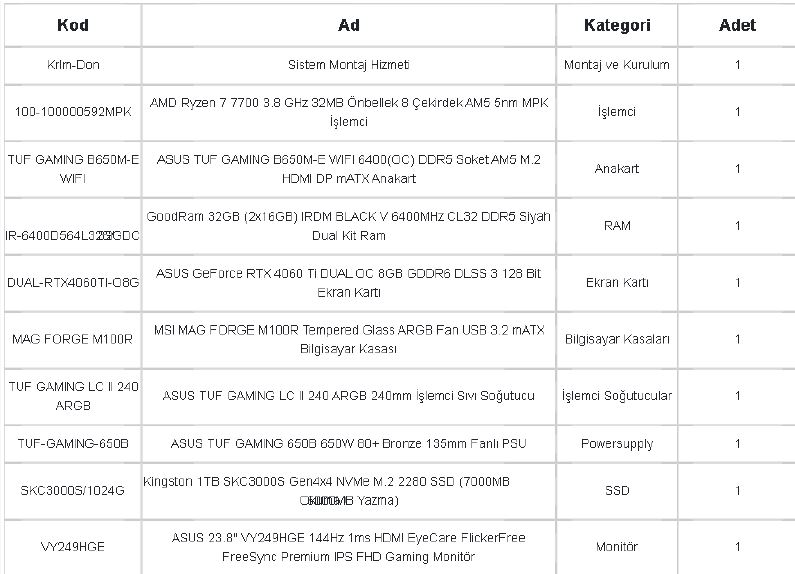 Bütçe belirtmeksizin ekte seçtiğim parçaları almayı düşünmekteyim. Tam kapsamlı sistem olduğunu düşünüyorum ancak ileride konfigürasyon sıkıntısı olur mu olmaz mı bilmiyorum. Sizce değiştirmem gereken herhangi bir parça var mı yoksa bütün parçaları yeniden mi belirlemeliyim?