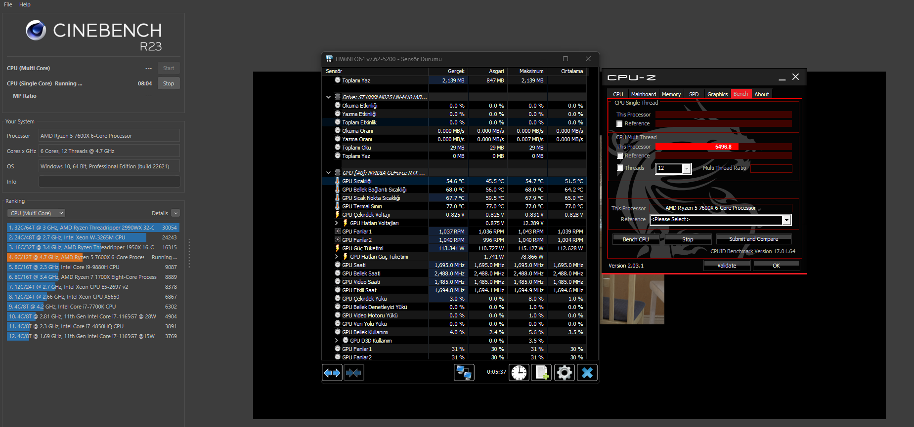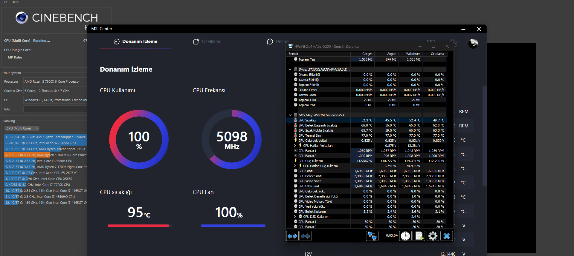 Bu halde, Cinebench çalışırken üstüne CPU-Z Stres test açıyorum makine de kapanmıyor ve bir de skor alıyor cihaz. Ama sıcaklıkların biri 95, diğeri bambaşka değerler veriyor.