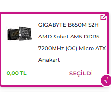 Vatan'dan hazır sistem alıyorum bu yüzden seçebileceğim 2 tane anakart seçeneğim var.