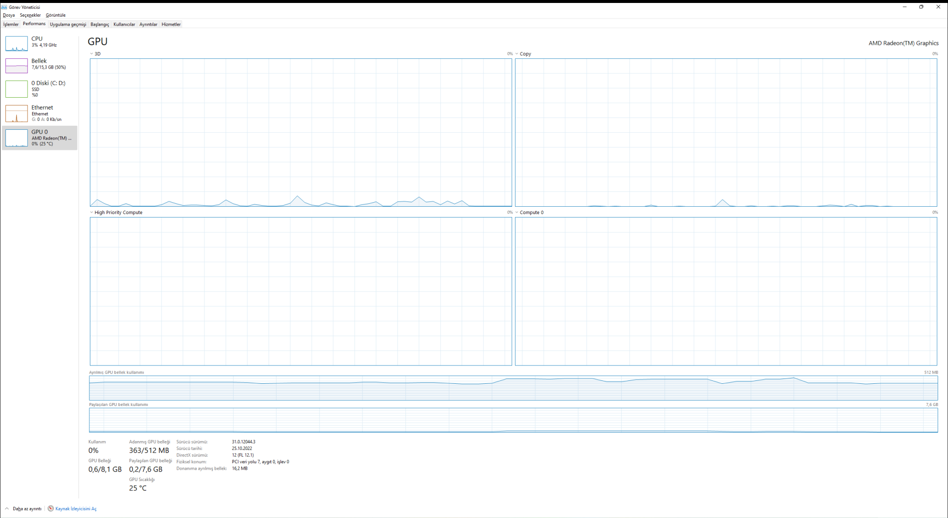 AMD Ryzen 5600G sistem aldım ama oyunlarda VRAM kullanımı 500 MB civarı. Bu değer normal midir? Yükseltmek gerekir mi? Adanmış GPU 512MB paylaşılan GPU 7.6 GB. VRAM 4 GB yapsam performans artışı olur mu?
