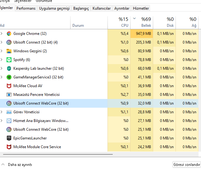 • Tam bu ekran açıkken Görev Yöneticisi aç.