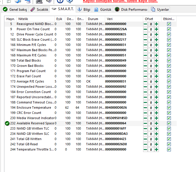 SSD de aynı sonucu verdi fakat son dediğiniz uygulama böyle gösteriyor