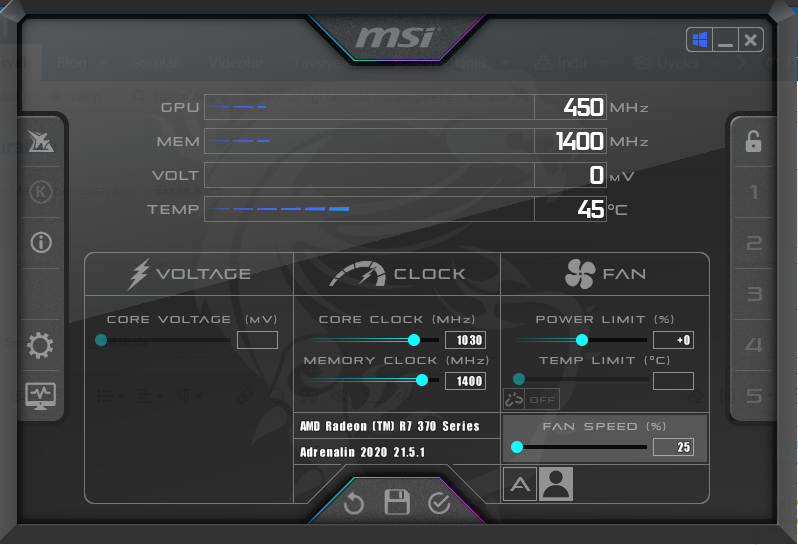 Ekran kartım (R7 370 2 GB) gereğinden fazla ısınıyor ve bu yüzden birkaç kez soğuk lehim oldu. Bir keresinde reballing yaptırdım ve sadece 10 gün dayandı. Dün son kez bir oyun oynayayım diye çakmakla ısıtıp bi' yarım saat oyun oynadım sonra baktım ki kart 103 dereceyi görmüş. Aradan bir gün geçti kart hala çalışıyor bir termal macun sipariş ettim. Bir de downclock yaparsam ve kart ısınmazsa belki ömrü uzanır diye düşünüyorum. Downclock hakkında yardımcı olabilecek birisi var mı? Şu anki değerlerim ekteki fotoğrafta var.
