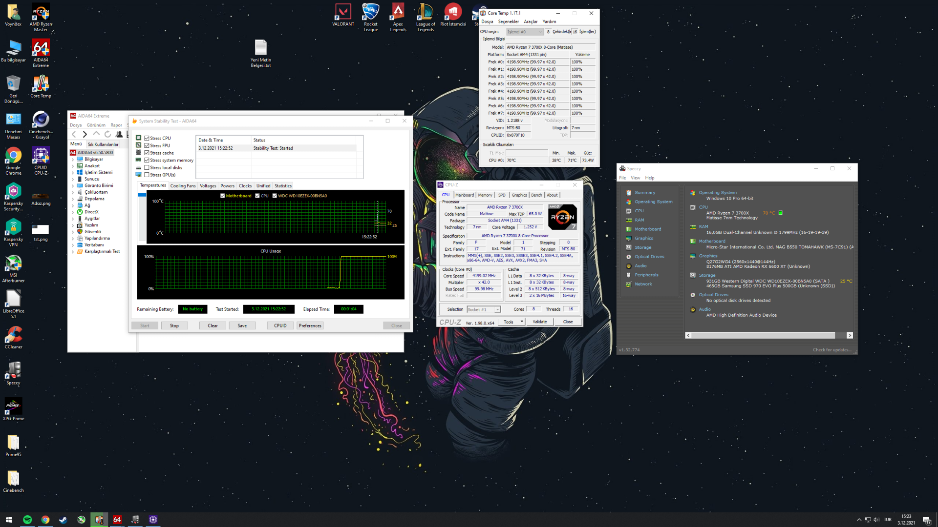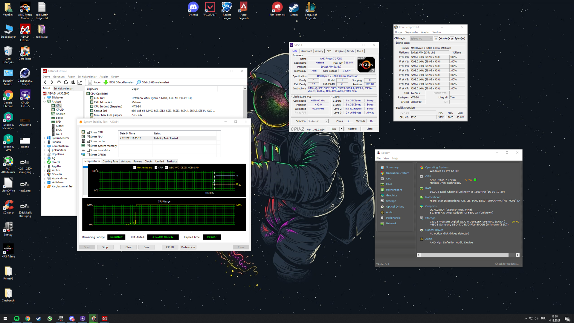 Bu gorseller 3 Aralık 2021 tarihine ait işlemcime 1.250voltaj verdiğimde 70 derecenin üstüne çıkmıyordu ek olarak 1.300 voltajda ise en fazla 77 dereceleri görüyordum.