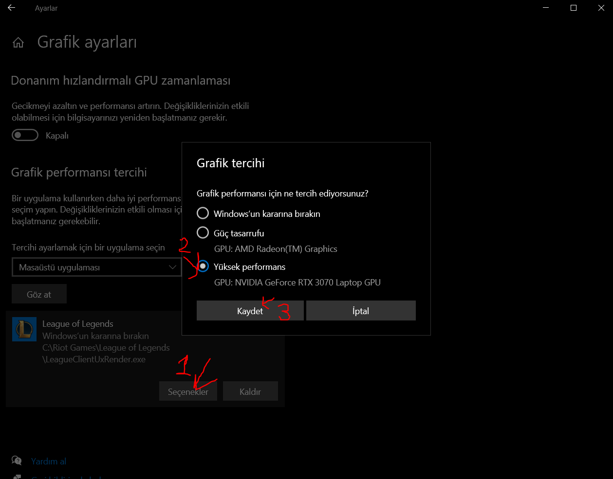 Güç yönetimini yüksek performans moduna alın. Bilgisayarın GPU ve CPU üzerindeki macunları değiştirtin ve fanlarını temizletin. League of Legends'i silip yeniden yükleyin.