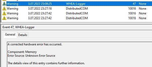 Paylaştığınız rapor ayın üçüne kadar olan olayları gösteriyor. O gün Windows tarafından düzeltilebilmiş bir bellek hatası almışsınız.