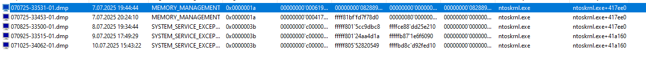 O zaman elimizdeki bilgilerle ilerleyelim. MEMORY_MANAGEMENT hatası ve SYSTEM_SERVICE_EXCEPTION hataları var. RAM testi yapalım diyeceğim. MemTest86 ile RAM testi yapıp sonuçları paylaşın. Mavi ekran alırsanız dump dosyasını atın.