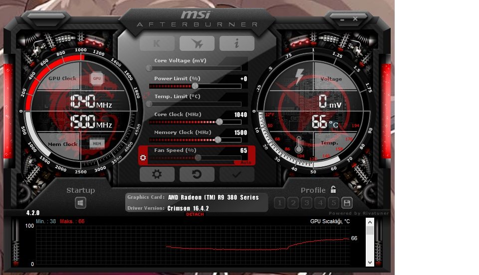 Oynadığım oyunda AfterBurner ile profil oluşturdum ama oyunu oynarken değerleri falan göstermiyor. Diğer oynadığım oyunlarda ise gösteriyor. Mesela Darksiders 60-65 arası görüyorum sıcaklığı boşta ise 45-50 arası gidip geliyor ve sürücü güncellerken her defasında mhqs gibi bir sürücü gösteriyor. Güncelliyorum yine geliyor güncelliyorum yine geliyor :D