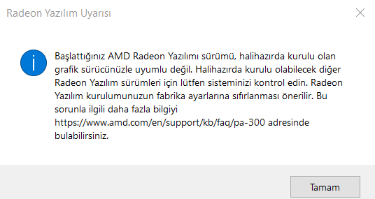 Sistemde birden fazla AMD grafik birimi olan GPU var, ikisi için de aynı sürümü kurun.
