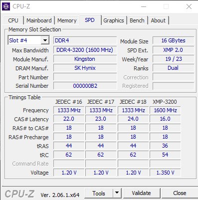 2666MHz CL 18 ve 1.2V'da çalışıyor.