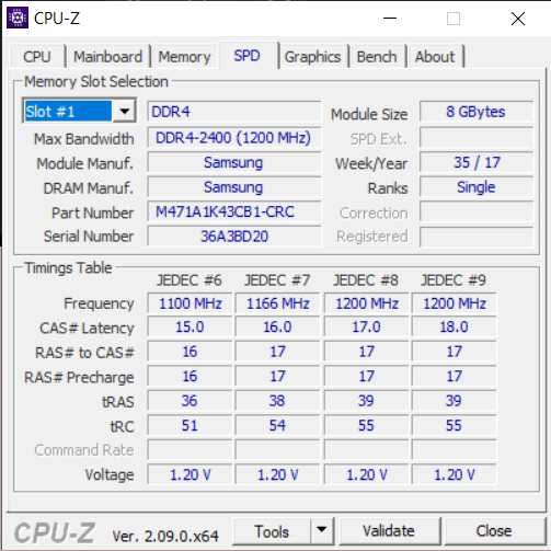 CPU-Z'de sadece 1 slot da RAM gözüküyor o da 8 GB. Bugüne kadar hep aynı RAM vardı daha öncesini bilmiyorum abimin çünkü ama yıllardır aynı RAM.