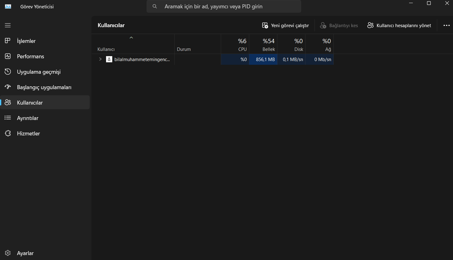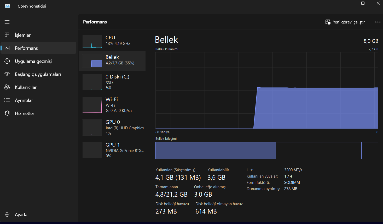 Görev Yöneticisi'nden performans ve işlemler kısmına baktığım zaman RAM kullanımım fazla ama kullanıcılar kısmına baktığım zaman yüzde olarak fazla lakin kullanılan belleği az gösteriyor. Ne kadar düzeltmeye çalışsam da düzeltemedi.