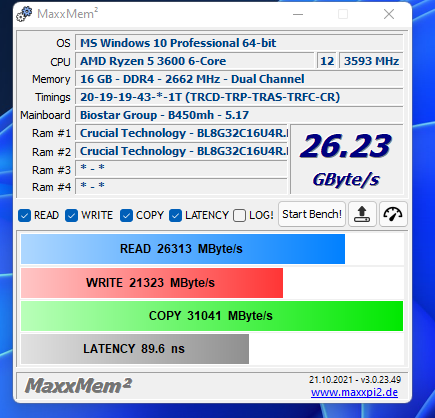 Maxmem2 uygulaması ile bir test edebilirsin. Xmp açık ve kapalı.