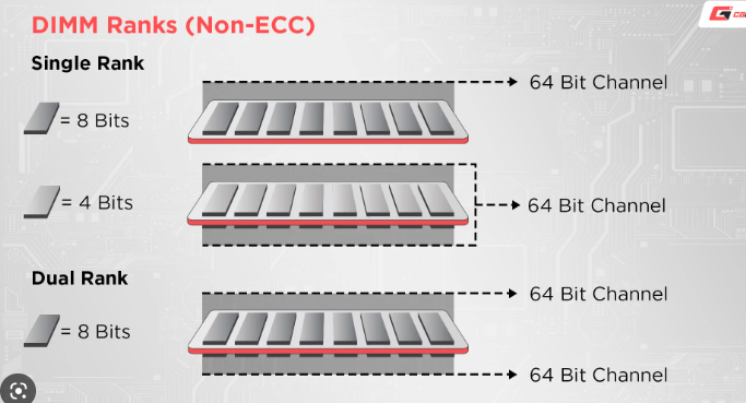 PCB'nin tek tarafında RAM çipleri varsa Single Rank, Her 2 tarafında da RAM çipleri olup her 2 tarafında da kontrolcü varsa Dual-Rank oluyor.