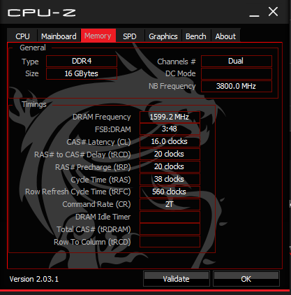 Bir de sadece Crucial olan RAM XMP açıkken 3200 MHz de calısıyordu. Diğeri ise XMP açsam bile 2133'ten cıkmıyordu yukarıya. Şu an ise ikisi de takılı XMP açık 2133 MHz gösteriyor BIOS ekranında. Fakat CPU Z de NB Frequency fotografta göründüğü gibi 3800'lere cıkıyor.