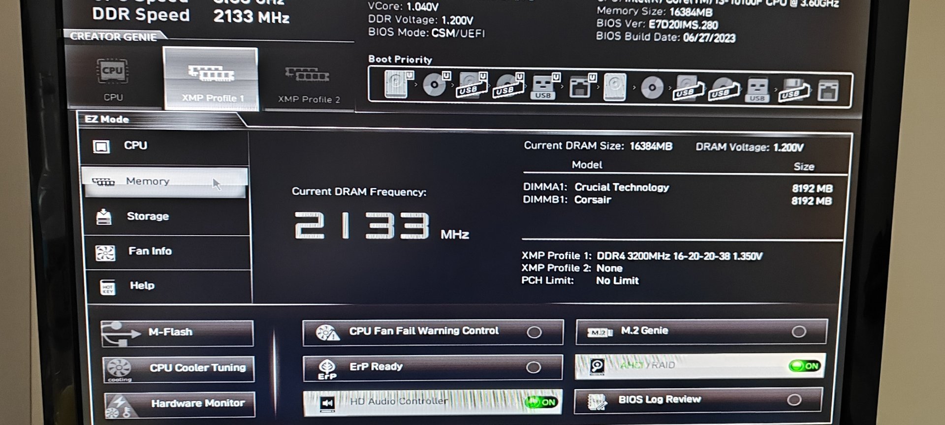 Crucial Ballistix RAM'im vardı. 8 GB 3200 MHz CL16.