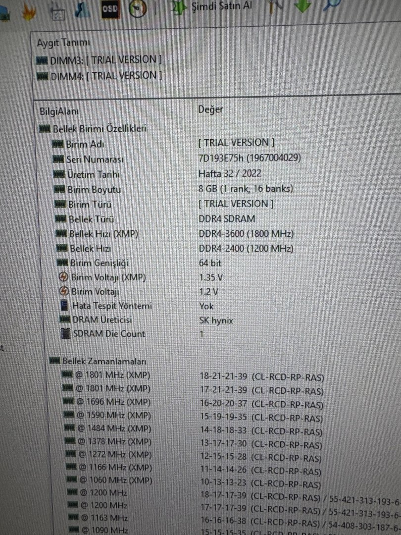 BIOS'tan RAM'lerin MHz ayarını yapayım dedim sonra iki RAM farklı olduğunu fark ettim. Oysa ben RAM'leri 3600 MHz diye satın aldım öyle biliyordum. Programdan bakınca biri 3000 biri 3600 gösteriyor bu doğru mu?