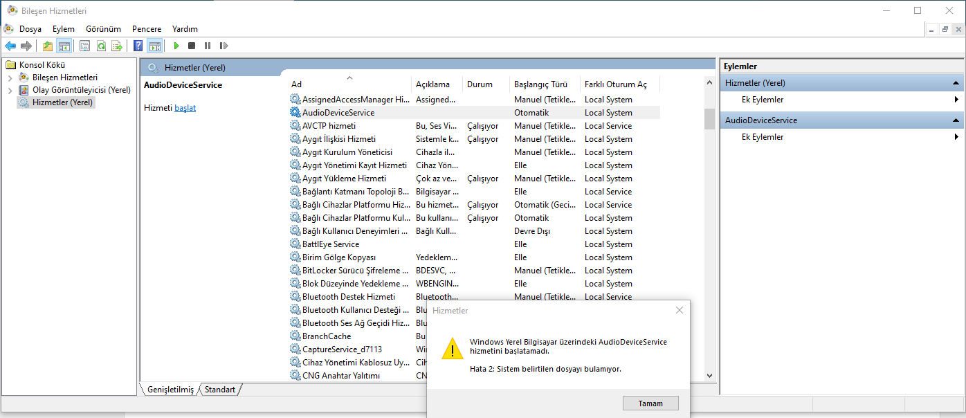 Program files(X86)'dan Rampage klasörünü sildim bazı forumlarda denildiği üzere fakat yine aynı hatayı alıyorum bir bilgisi olan var mı? Hizmetlerde Audio Service'i başlatamıyorum bir de dosya bulunamadı diyor.