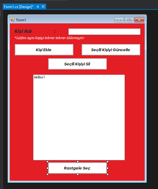 İyi günler herkese. Başlık pek açık olmayabilir. Sınıftaki bir projem için bir programa ihtiyacım var. Kendimde kodlayabilirim fakat nasıl yapacağımı bilmiyorum. Programa 38 kişinin adını yazacağım ve butona her tıkladığımda ekrana rastgele birisinin adı çıkacak. Acaba bunu nasıl yapabilirim?