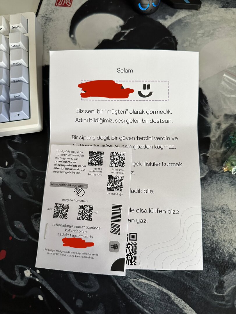 Rationalkeys.com adlı siteden klavyem için switch satın aldım. Toplam 700 TL tuttu ve elime 3 gün içerisinde ulaştı. İlk gün kargoya verilmedi, ikinci günün gecesi ise kargoya verildi. Sabah 8'de direkt gel-al noktasından DHL kargo merkezinden aldım.