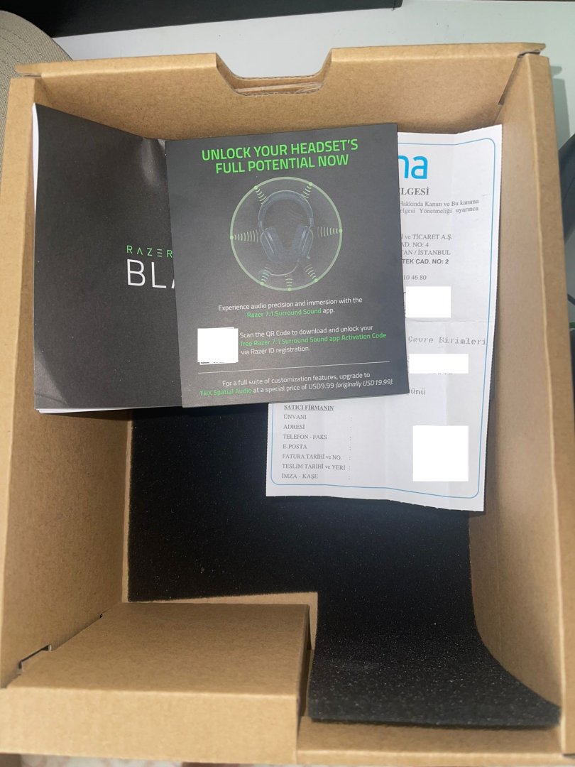 Kutu içeriğinden eğer Razer ID'niz çıkmıyor ise 7.1 Surround Sound Activation Code Online Service bu siteden giriş yapıp, ürün bilgilerinizi tanımlayıp Razer ID'nize ulaşabilirsiniz.