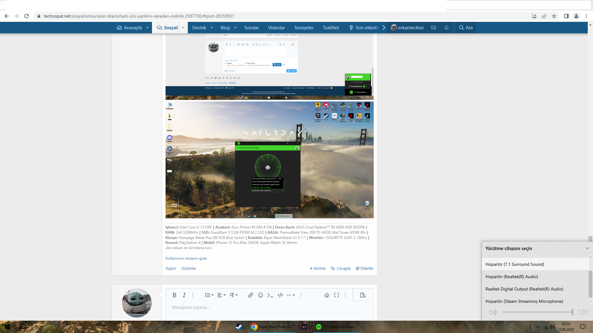 7.1 Surround Sound | Razer United States bu linkten ise Razer AppEngine adlı uygulamayı indirip sanal 7.1 özelliğini aktif hale getirebilirsiniz.