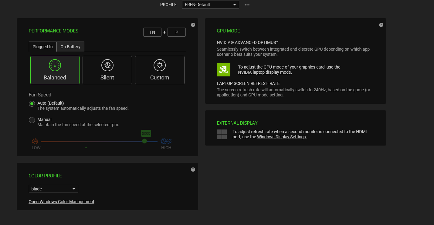 Kendi kullanımımla alakalı iki şey belirtmek isterim öncellikle. İlk olarak ısı takıntım olduğu için ve CPU sıcaklığının 80'i geçmesini istemediğim için performans ayarım hem Razer üzerinde hem de Windows 11 üzerinde dengeli moda ayarlı. İkinci olarak, harici 1080p 144Hz monitör kullanıyorum. Oyunları da o monitörde oynuyorum, bu yüzden oyun performans değerlerim 1080p çözünürlük için.