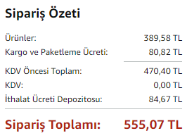 Gümrük dahil diye düşünmüştüm 80TL gönderim ücretini görünce.