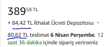 Vergi ve kargoyla beraber bayağı bir aşıyor 390TL'yi. Amazon'dan bakarken bunlara dikkat edin.