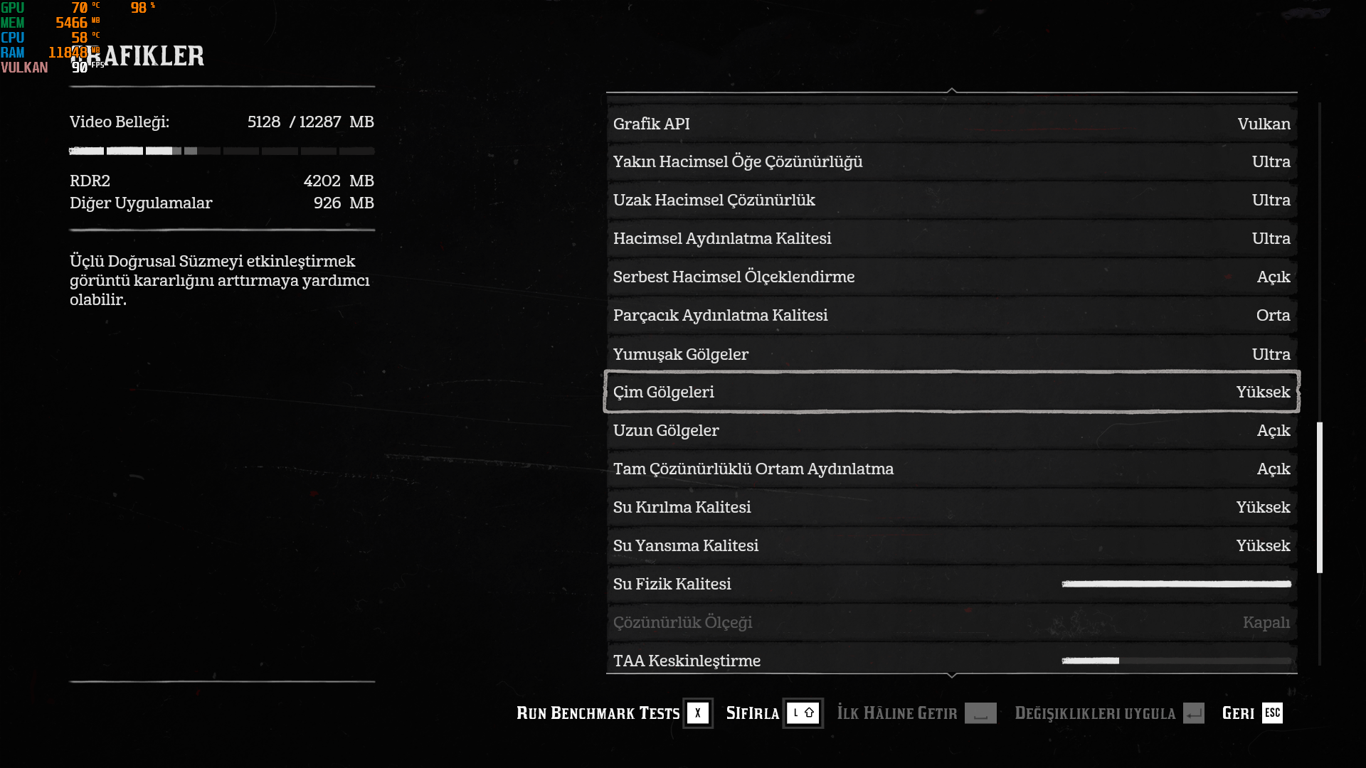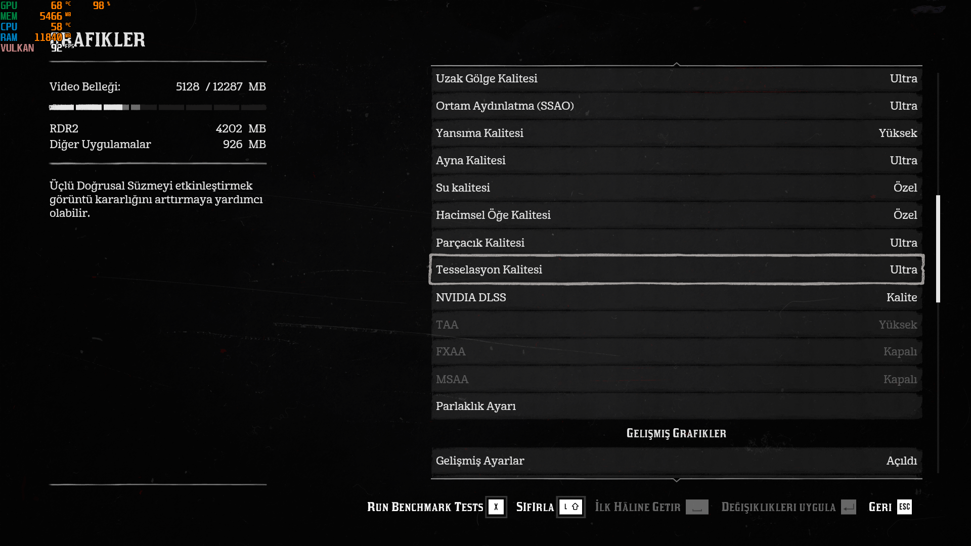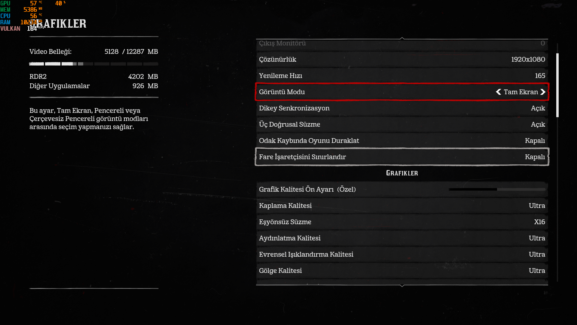 Oyun ayarlarım aşağıda.