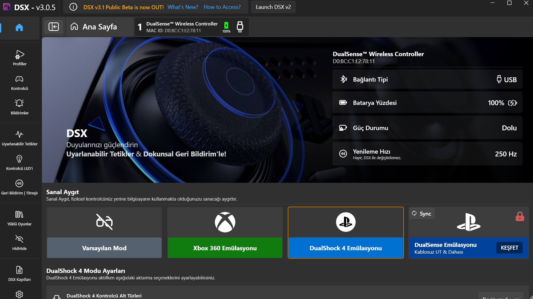 Red Dead Redemption 2 içinde DualSense kontrolcümün titreşimi çalışmıyor. Steam üzerinden DSX uygulamasını kullanıp, oyun içinde Xbox yerine PlayStation layout gözükmesi için kontrolcüyü DualShock 4'e emüle ediyorum. Xbox 360 seçeneğiyle de çalışmıyor. Oyun denuvosuz (platform üzerinden satın alınmadı.) Yardımlarınız için şimdiden teşekkür ederim.