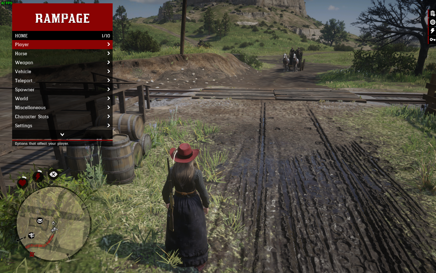 RDR 2 story Mode'a Rampage mod yükledim karakterimin dış görünüşünü değiştirdim. Fakat dış görünüşünü değiştirince can ve hız barı en alt seviyede oldu. Ekran görüntüsü ile karakterin hız ve can barını Rampage menüsünden nasıl değiştirebileceğimi gösterir misiniz?
