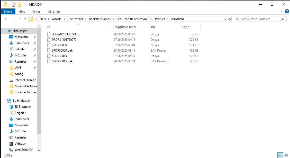 Bende Veri kurtarma yazılımı Ease US ile geçmiş savemi buldum, belgelerimde olan profiles bölümüne attım. Kurtardığım dosyalar görselde olanlar.