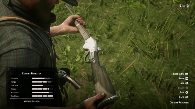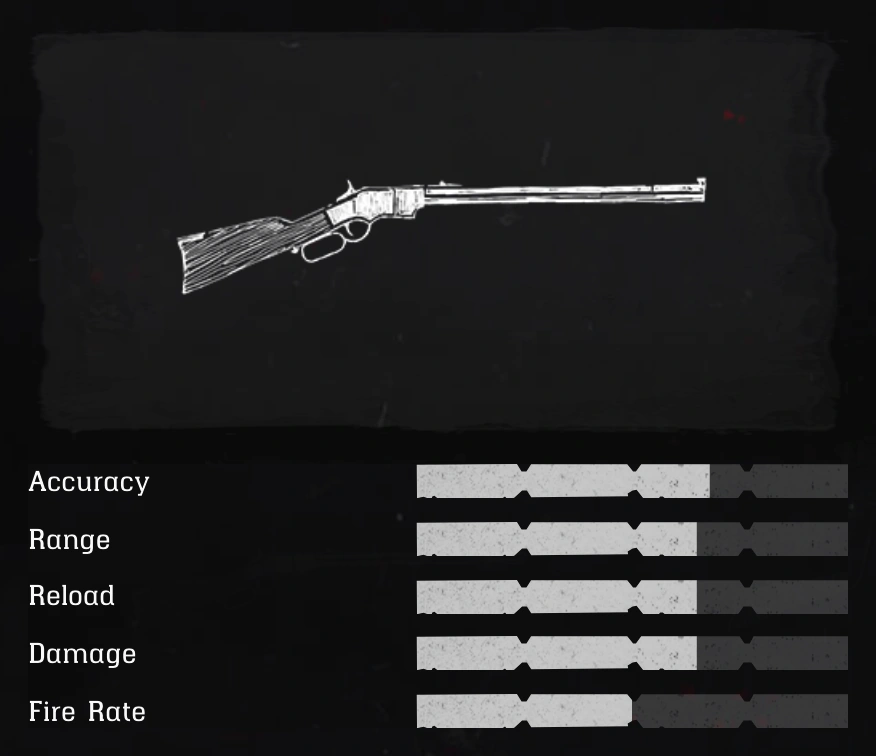 Oyunda sahip olduğunuz ilk repeater olan carbine repeater hızlı bir silahtır, mermi değiştirme süresi azdır. Statlar yukarıda ayrıntılı. Benim puanım 10/5.Oynun başı için gayet ideal bir repeater.
