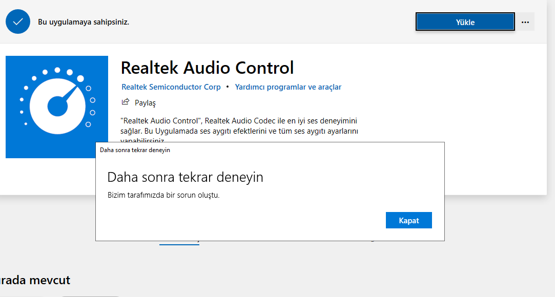 Merhaba. Anakartımın sitesinden Realtek sürücüsünü yükleyince Audio yöneticisi açılmıyor. Bende bunu yükleyip ayarları yapacaktım ama bu sefer bu hatayı alıyorum. Nasıl çözebilirim?