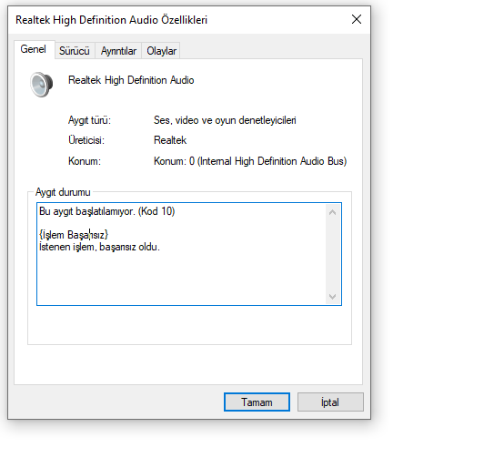 İlk başta şunu ekleyeyim önceki konuların hepsini inceledim hiçbiri işime yaramadı. Bilgisayarımı kapattıktan sonra belirli bir saat (10) geçtikten sonra açtığım zaman Realtek HD Audio sağ Alt'a geliyor ve açılmış oluyor fakat 10 saat süre dolmadan veyahut bilgisayarı yeniden başlattıktan sonra gelmiyor. Aygıt yöneticisine girdiğimde ünlem vardı. Sağ tık yapıp sürücüyü güncelleştir dediğimde ise cihazınız için zaten en iyi sürücüler yüklü diyor fakat Windows Update'e gittiğimde hatayla karşılaşıldı hatası atıyor süre olarak bilgisayarı yeniden başlattığım süreyi gösteriyor. Bunu nasıl çözebilirim yardım edebilir misiniz?
